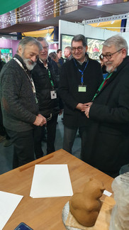 Michel BASSOMPIERRE a été invité par le cinéaste/réalisateur Rémy MARION. C'est donc entre photos et films d'ours que l'on pouvait (re)découvrir quelques sculptures, dont la monumentale en bronze "Les Saumons n°1".